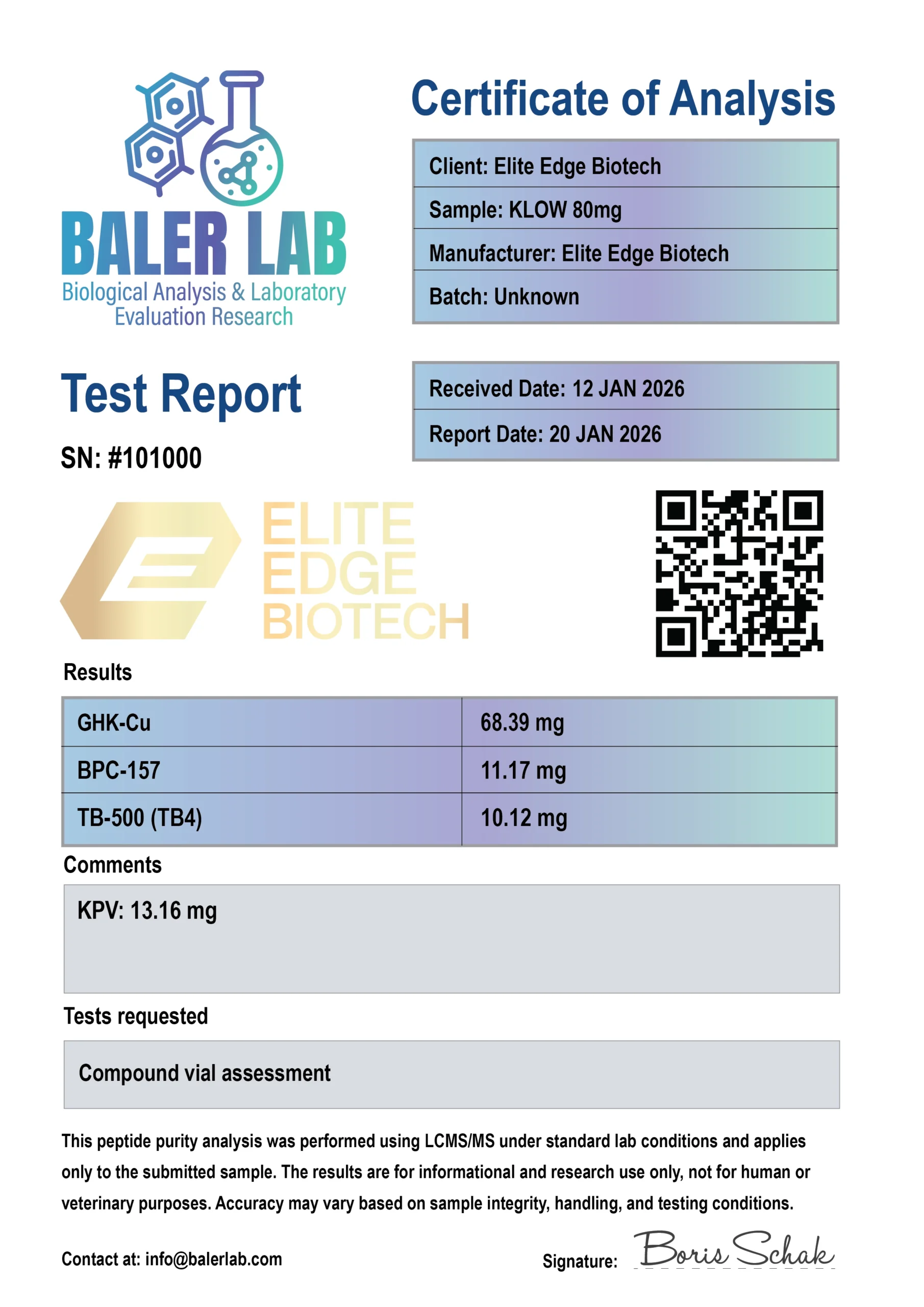 View Latest COA ReportsOrder above $500, get free storage box